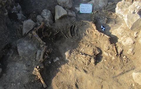 او افزود: «بین دست و پای این اسب، اسکلت یک سگ دفن شده که جمجمۀ آن از بین رفته و اندامهای حرکتی آن باقی مانده است.»